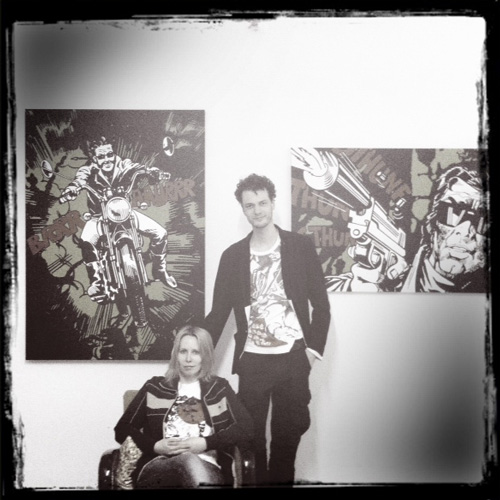 The art project SCHUND by Georgina Obstgarten and Carsten Wagner is inspired by smutty old black and white comics from the 1970s and 1980s. Salacious, provocatice and offensively presented scenes from a world full of sex, violence and drama form the fabric of which the artists create their works. Societal role models and stereotypes of their time are condensed within these comics. While still concealed within the mass of drawings on paper, they are brought into focus and showcased in the SCHUND images. Characters are detached from their original scenes and recontextualized. Backgrounds and colors work as design elements that allow the figures to stand as independent images – regardless of the sequence within the original comic.